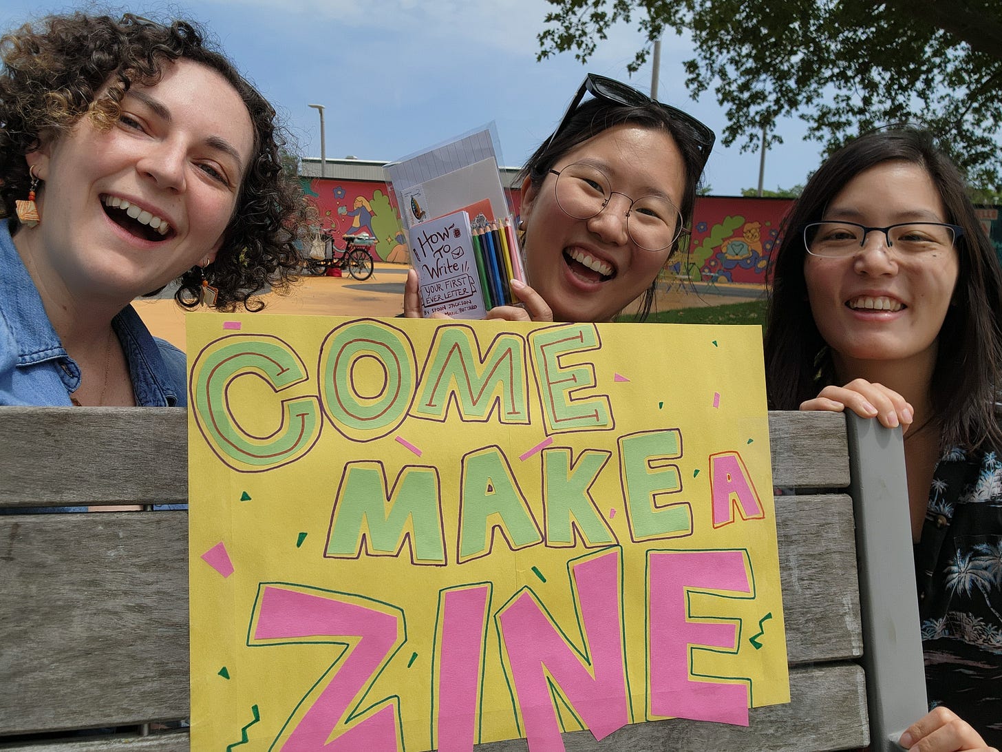 Overall, the pressure cooker of 2025’s political landscape has lit a fire under us to do all the good that we can right now, and practice hope through action. We believe this is human to human work. Heart to heart connections are properly messy. Creativity is an iterative process that requires soul. It is hard and it is beautiful. We’re so happy to be here on the planet with each of you reading this. Happy New Year, let’s make zines together in 2026!