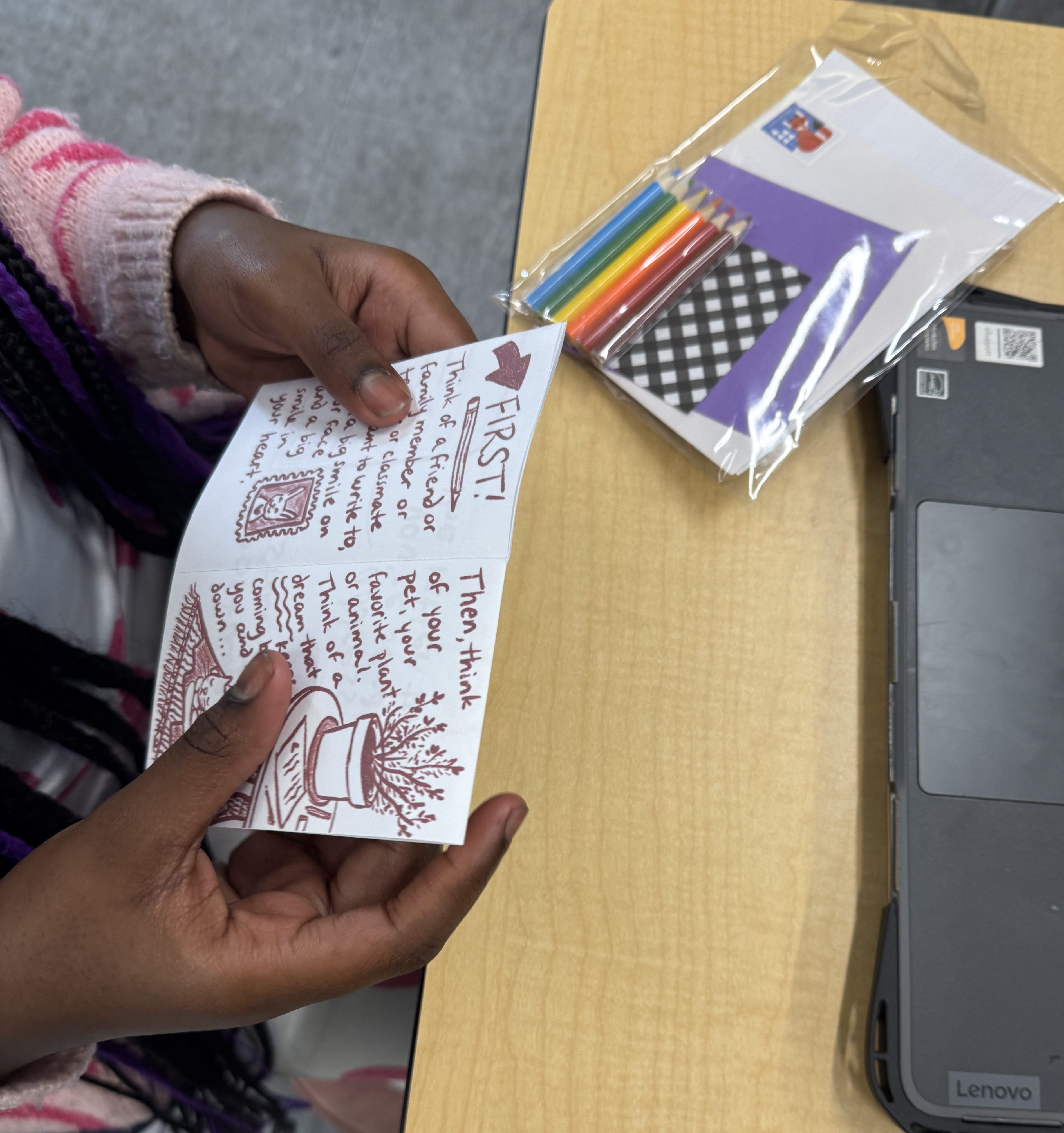 The defining project of the year was creating “kid kits” to introduce elementary school aged kids to the art of letter writing. Most of the kits we distributed were these ones, consisting of our How to Write Your First Ever Letter zine (available for free download), a stamped envelope, colored paper, origami paper, and colored pencils or crayons. Before the school holiday break, we sent 20 of these kits to Mariah’s 4th grade class in Baltimore. In the future, we hope to send one for each of the 80 students she sees in a day.