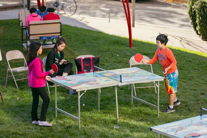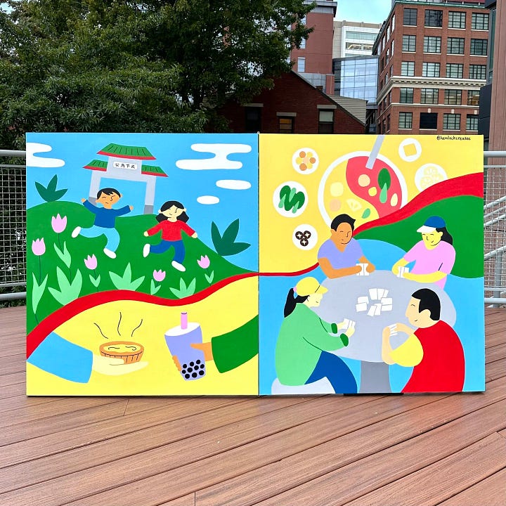 Although her personal practice is rooted in digital art and illustration, Stephanie has spent the last couple years branching out into more physical media. In 2024, she worked with the Pao Arts Center as well as artists Jennifer Duan and Katelyn Lipton to bring painted ping pong tables to Chinatown in an effort to encourage intergenerational gathering, play, and wellness. Her ping pong table, “People of Chinatown,” celebrates the people who live in, work in, and visit the neighborhood. Last year, the Pao Arts Center featured the ping pong tables in their exhibit “Celebrations of Perseverance: Public Art in Chinatown, 2024-2025.”